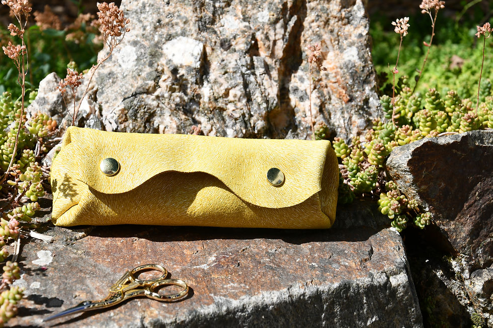 Trousse HUGUETTE Cuir Gris & Fleurs
